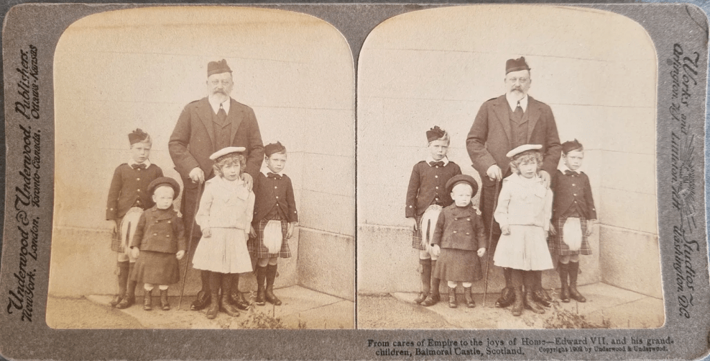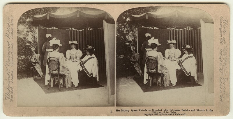 In 1897, 3D giants Underwood & Underwood published his stereo of “Her Majesty Queen Victoria at Breakfast …” issued to mark the Queen’s Diamond Jubilee.