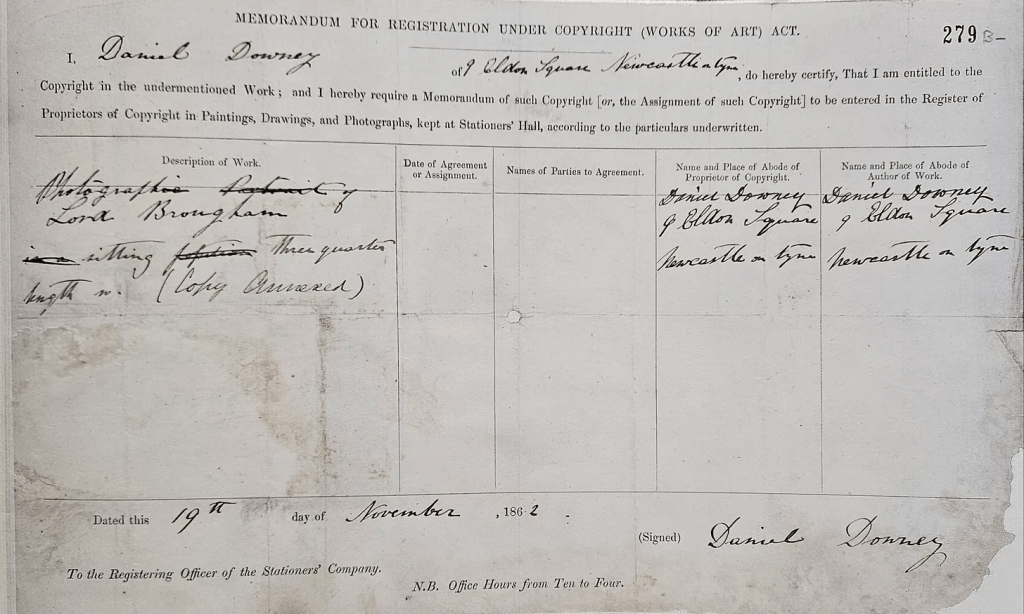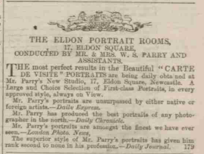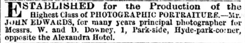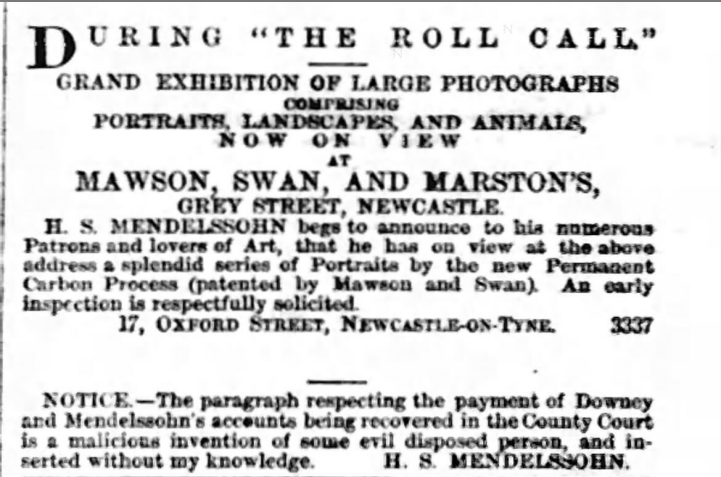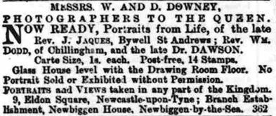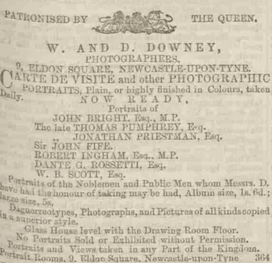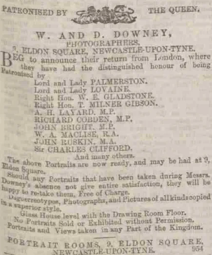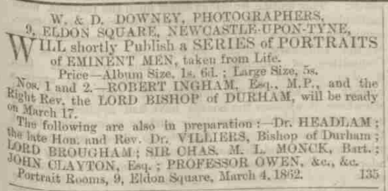 My research revealed a small ad placed in the Newcastle Daily Journal by “W. & D. Downey, Photographers, 9 Eldon Square, Newcastle-Upon-Tyne.”