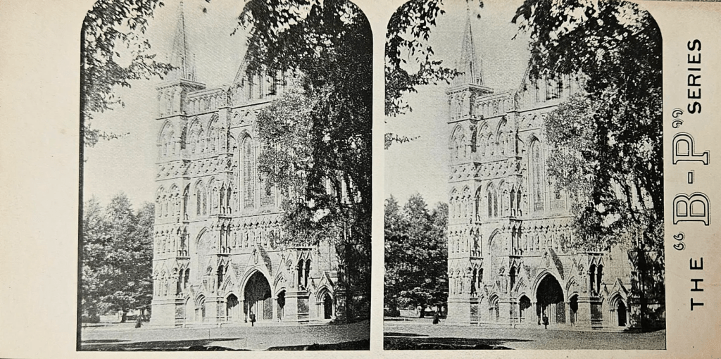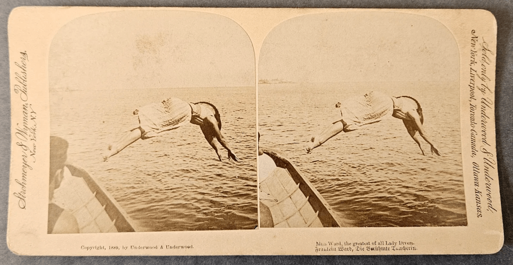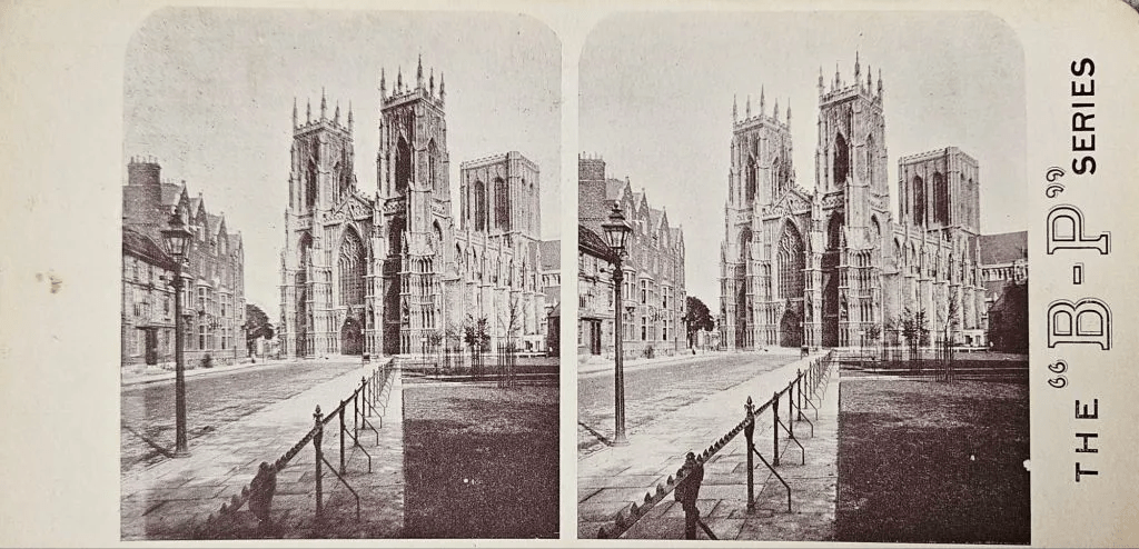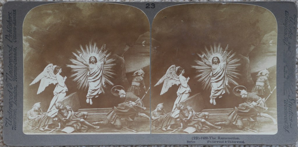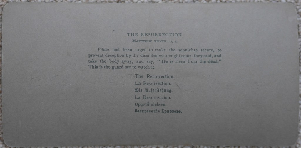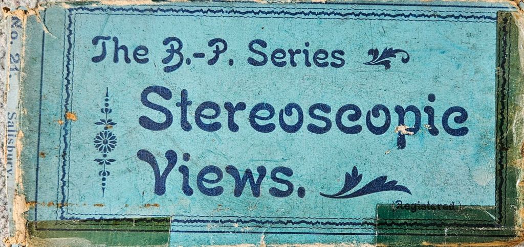 The first image I saw featured the verso of the stereocard revealing its title details printed on the company’s familar blue sticker.