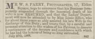 In July 1864 as Downey’s consolidated its reputation for high-quality work, the firm placed one of its regular ‘Now Ready’ advertisements in the local press.