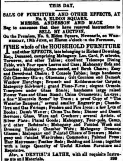 However, the ad’s dating of “March 4, 1862” in the bottom line did not align with the 1865 date given by English Heritage on its Belsay Hall website.