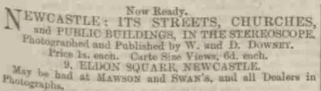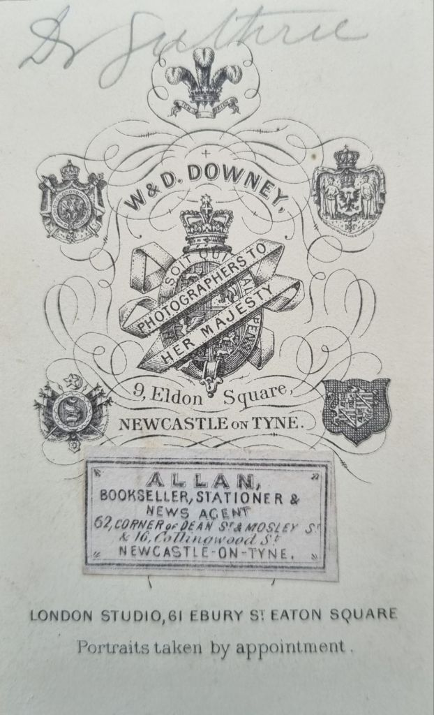 For instance, this carte de visite dates from the mid-1860s when the firm of W. & D. Downey was establishing its Newcastle studio in the heart of the city.