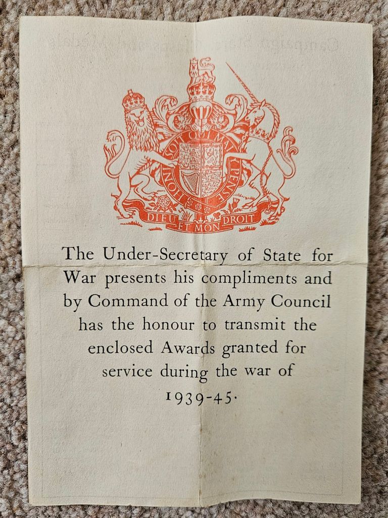 These covered the period from his call-up as a 20 year-old in September 1939 to his demob in February 1946.