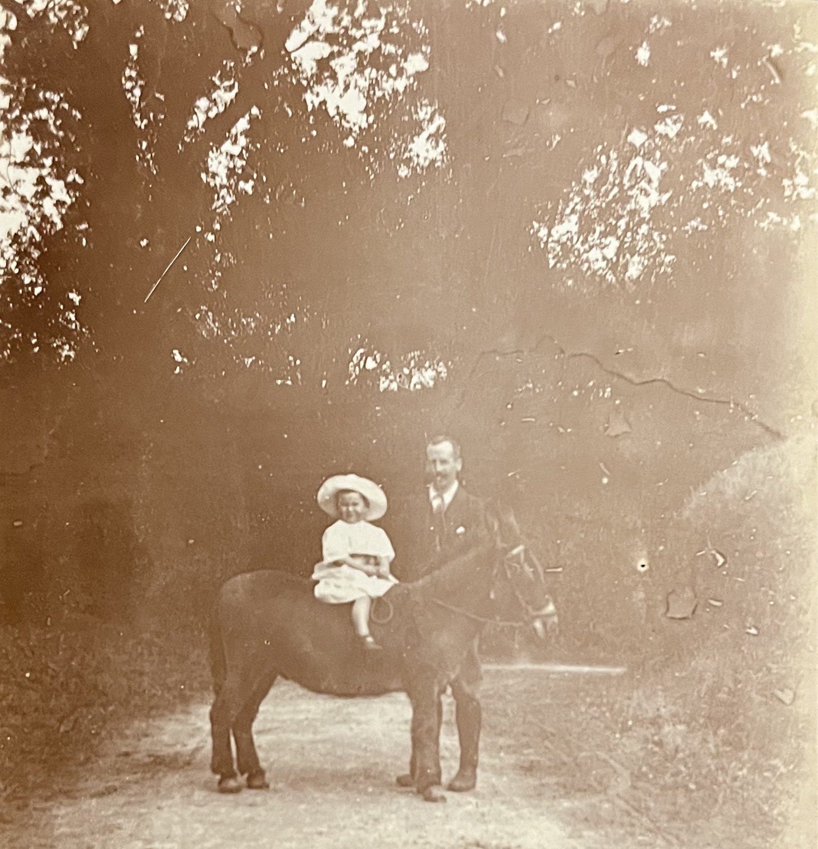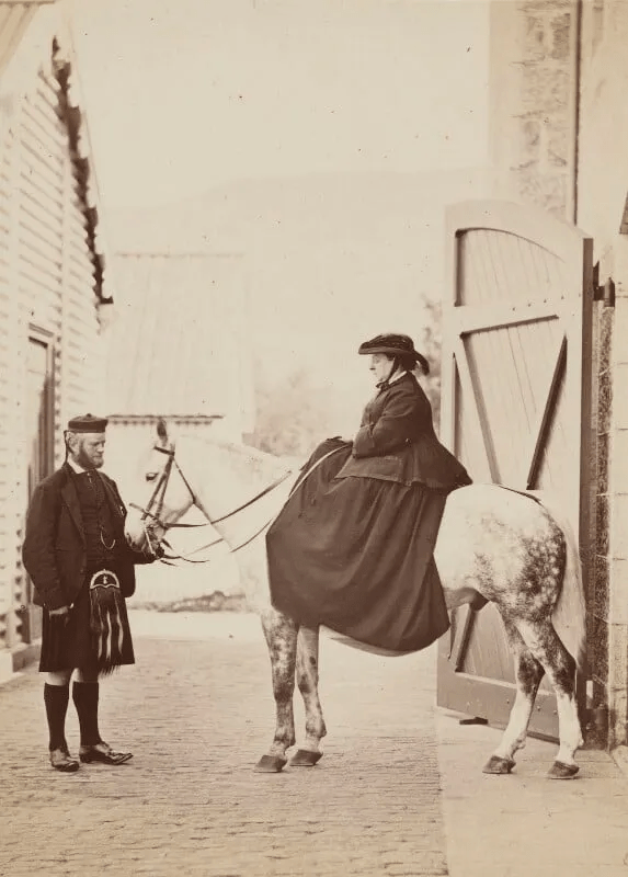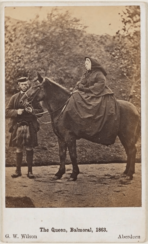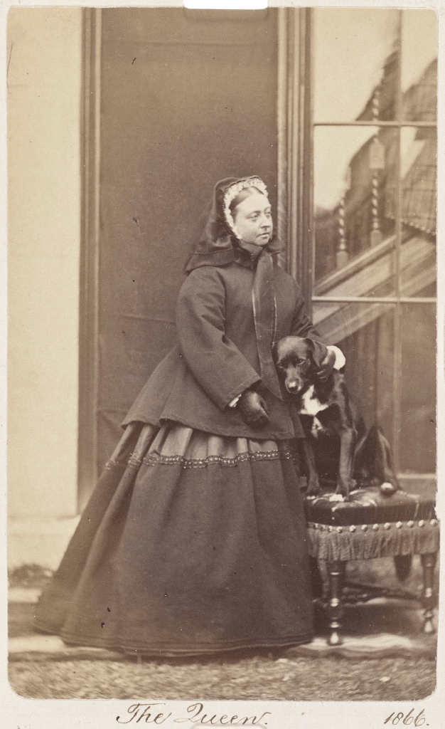 The donkey pulling the carriage was named as Zora, “an Egyptian, but born at Windsor,” whilst Turin, the small white dog (sat in the carriage) was a Pomeranian from Italy, and the collie, Rob Roy, (by the wall) was called Roy for short.
