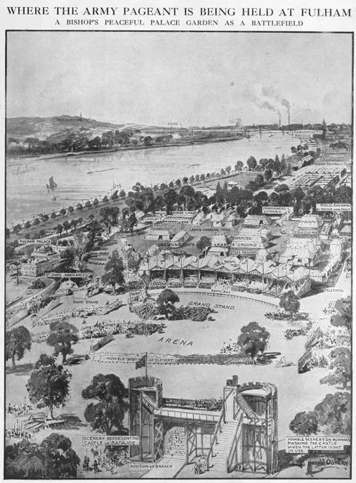 The Army Pageant featured around 5,000 performers and The Times estimated that its 21 shows were witnessed by 100,000 people, though it incurred huge financial loses.