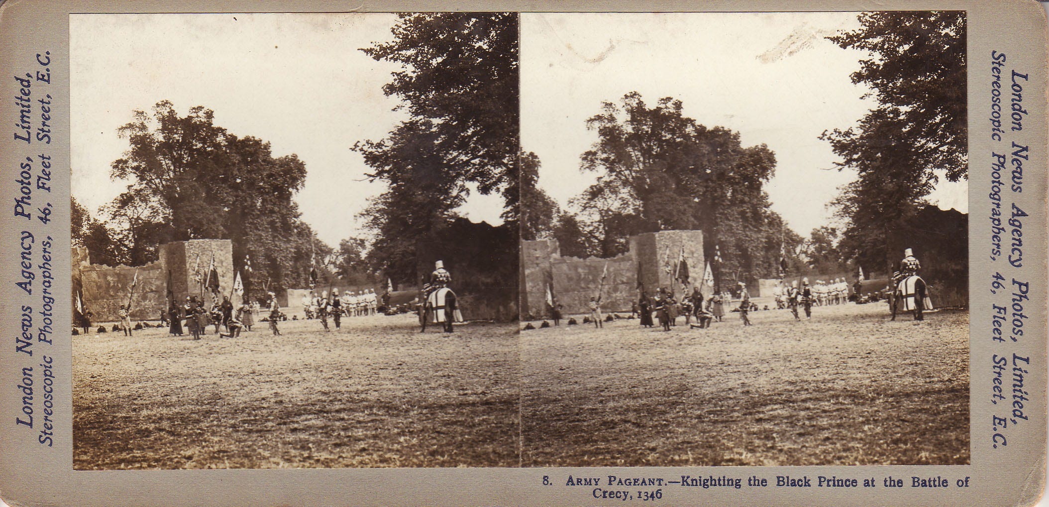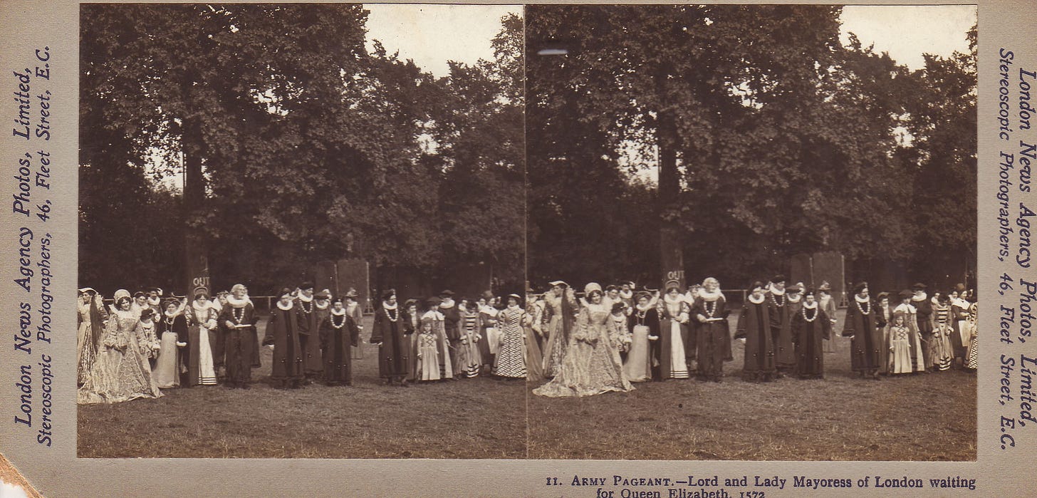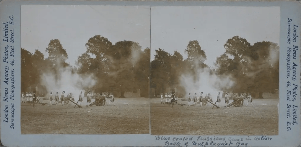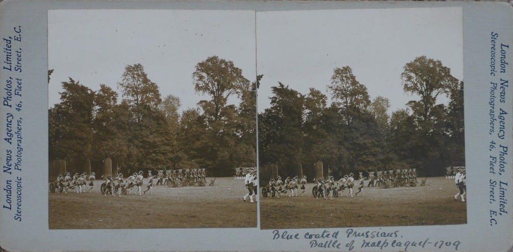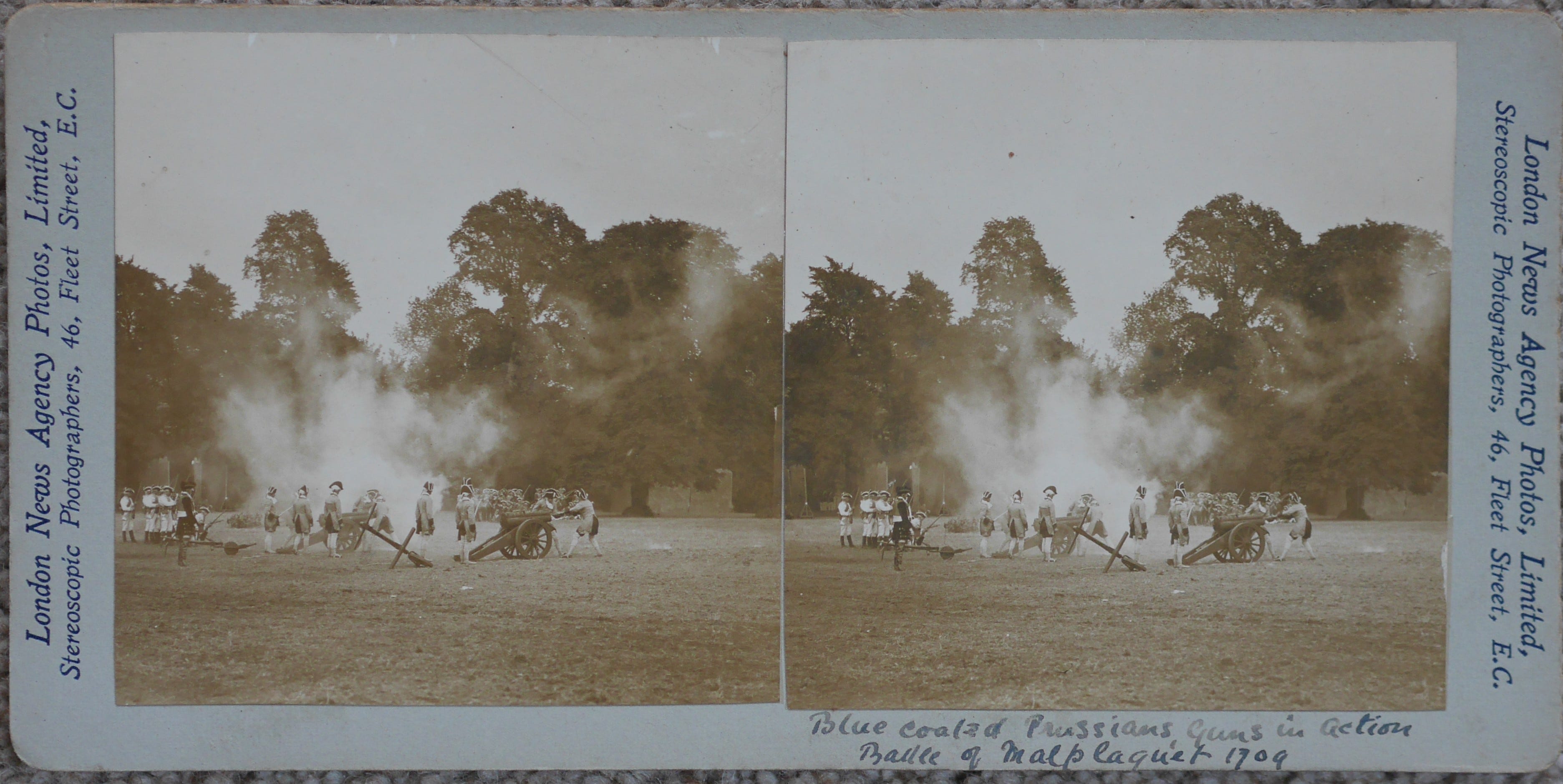 Reference to the “Battle of Malplaquet 1709” pointed to these stereos being taken during an event staged in June and July 1910 in the grounds of Fulham Palace, London.