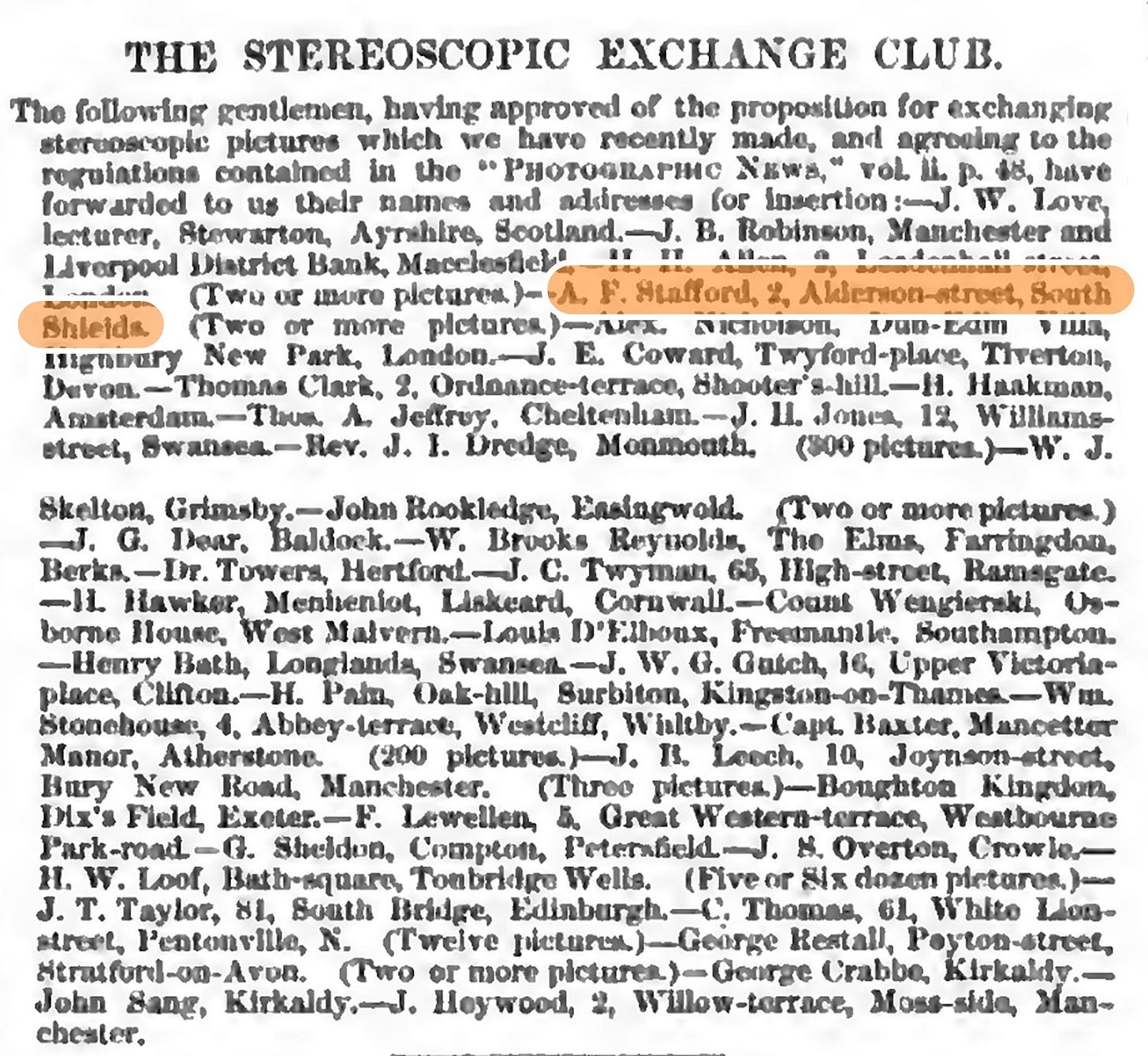 The following month, a list of gentlemen’s names was published as willing participants in what became known as ‘The Stereoscopic Exchange Club.’