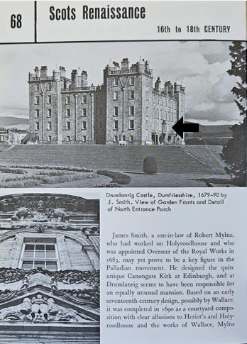 Amongst the entries was Drumlanrig Castle in Dumfriesshire (1679-1690) where a sequence was photographed featuring the building in both wide-shot and close-up.
