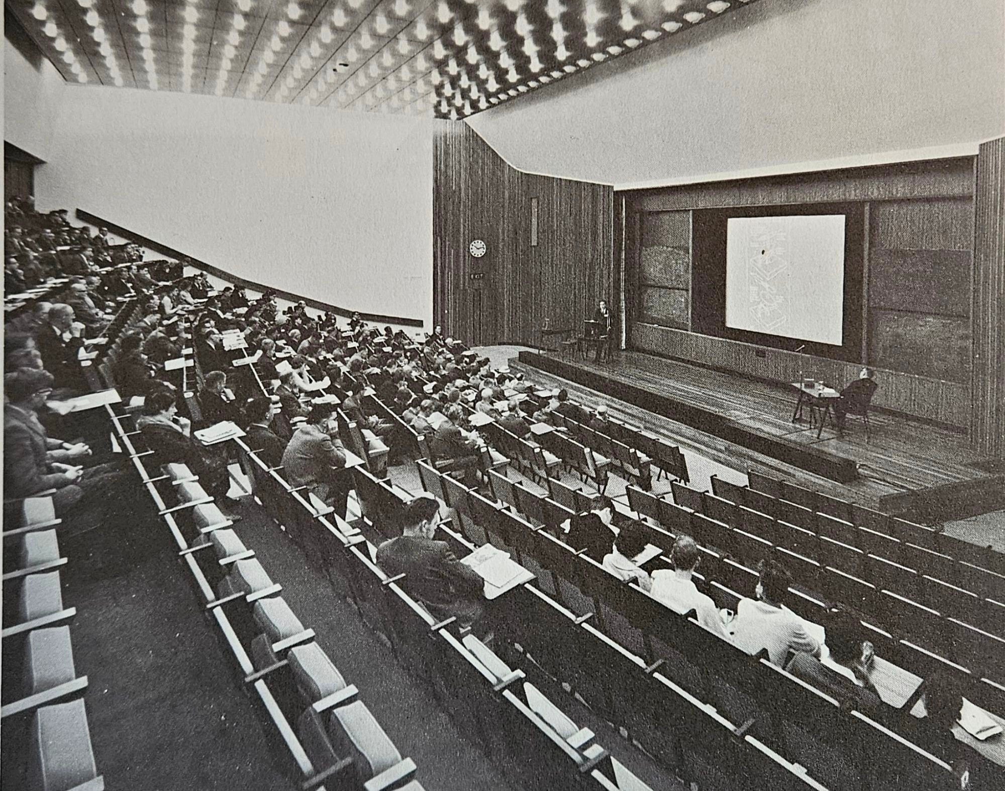 ‘The Main Renold 500 seat Theatre – Conference in session.’ From Modern Lecture Theatres (Oriel Press: Newcastle upon Tyne, 1966).‘One of the twin 300 seat Theatres in lower block’. From Modern Lecture Theatres (Oriel Press: Newcastle upon Tyne, 1966).‘One of the six 140 seat theatres …’ From Modern Lecture Theatres (Oriel Press: Newcastle upon Tyne, 1966).