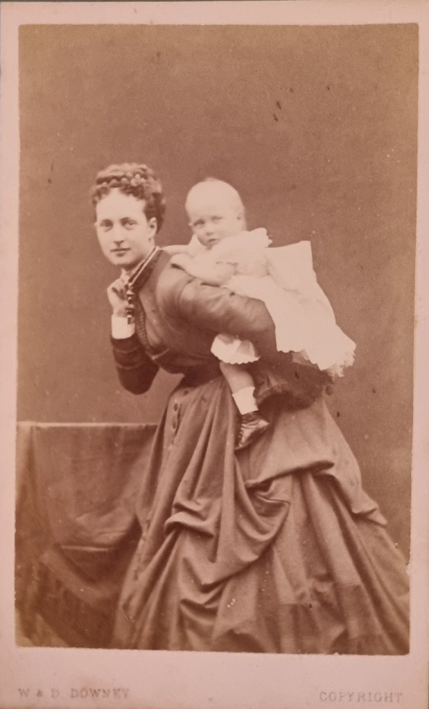 In September 1868, the firm of W. & D. Downey of Newcastle-on-Tyne photographed Alexandra carrying her baby daughter, Princess Louise, on her back.