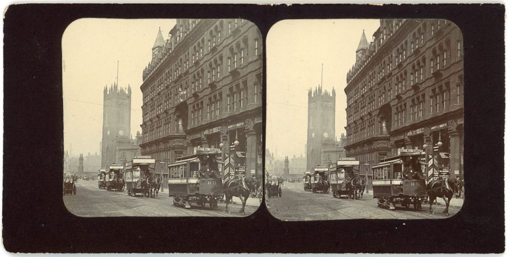 This wonderful 3D image features ‘Deansgate, Manchester’ with the city’s Anglican cathedral in the background