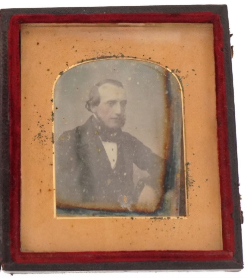Amongst hundreds of miscellaneous items were two daguerreotypes produced in Newcastle on Tyne featuring ‘a gentleman in formal dress’ and ‘a young female.’